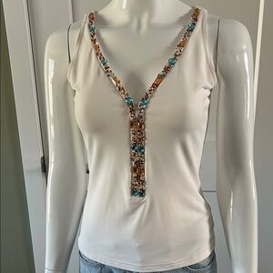 Never worn beautiful vintage Joseph Ribkoff Jewel and Zipper Tank. Has jewels chained with beads.
