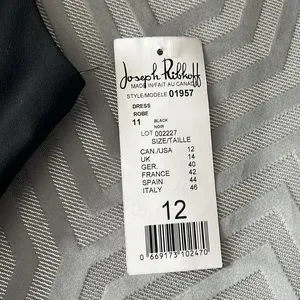 Size 12. Joseph Ribkoff sleeveless black dress. New. Measurements can be seen in the pictures. Brand new with tags. Smoke free and pet. Free home.
