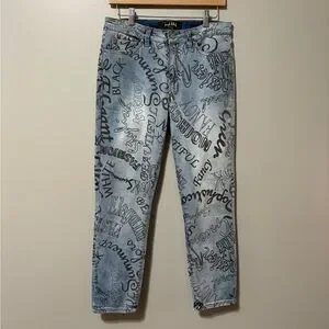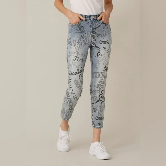 If these Joseph Ribkoff jeans could talk, they'd have a whole lot to say! Crafted in decadently soft denim, and brought to life with words in various styles of lettering, these jeans give new meaning to the term "statement" style.