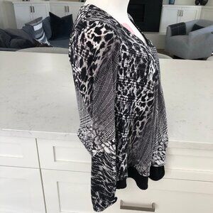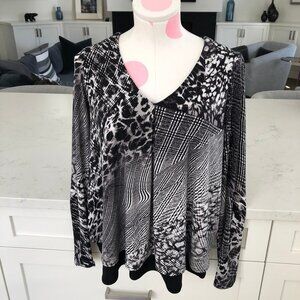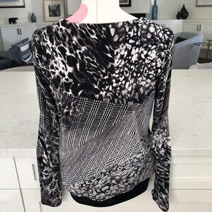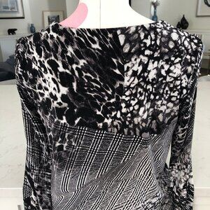 Joseph Ribkoff Lg Slv V Neck Layered Abstract Print Flowy Top Blk Grey Wht Sz 2