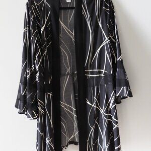 ABOUT:This duster is unlined to maintain its airy, flowy silhouette and features a sheer, abstract line print.