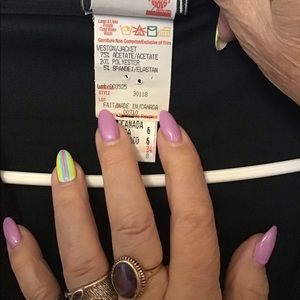 Cute little black jacket classic style. With slits up the front as an added feature. In excellent used condition.
