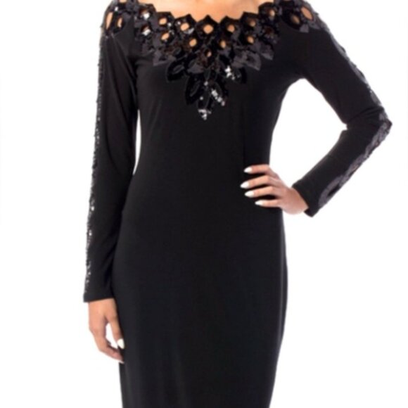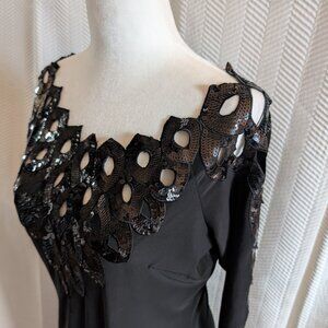 Joseph Ribkoff Long Sleeve Black Sequin Dress Size 10 Cocktail Wedding Guest