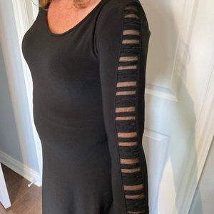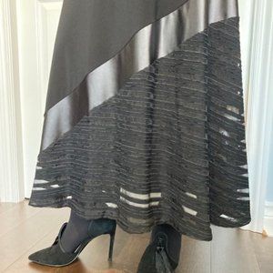 Beautiful black, long Joseph Ribkoff dress with unique accents in arms and skirt of dress; never worn; excellent condition; size 6; polyester and spandex; great for Christmas/ New Year's party or wedding