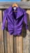 Shiny, jewel tones, vintage, soft, airy, statement piece, fancy, light jacket, vibrant, metallic, violet, indigo, plum, silver accents, silver zipper, chrome, office wear, corporate