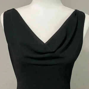 Like new condition! Beautiful black chiffon with a tiered ruffle skirt, draped neckline and lined.
