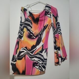 Vibrant abstract pattern. Long sleeves. Eye-catching design.