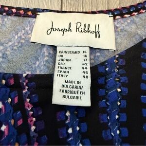 Chic dress with geometric design. Features blue, purple, and pink hues. Ideal for stylish outings.