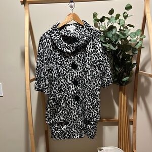 Joseph Ribkoff Oversized Leaf Design 3/4 Sleeve Crowl Neck Coat