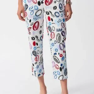 Add some flair to your summer wardrobe with these lively cropped pants adorned in a colourful abstract print. This easy pull-on style features a covered elastic waistband, and subtle side slits at the bottom leg. Cut from a Millennium fabric with perfect stretch for all-day comfort.