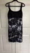 Joseph Ribkoff pencil dress with black and silver metallic printed tiered ruffles. Midi length fitted dress sleeveless with double straps and side zipper closure. Dress is made of a comfortable poly/spandex material and is lined.
