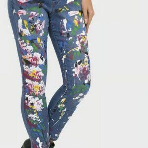 Joseph Ribkoff Pull On Painted Splatter Denim Jeans Size 12 Stretchy Artsy Fun