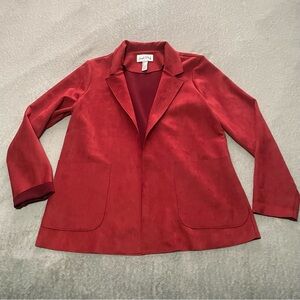Elegant red blazer by Joseph Ribkoff. Tailored fit with classic lapels. Perfect for formal occasions.