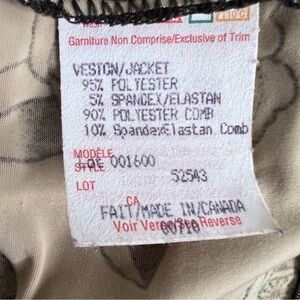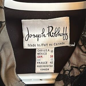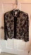 Joseph Ribkoff Rosette Zip Up Lightweight Jacket, Size 10. Very elegant on, statement piece. Rosettes have sparkly centres. Front trim by zipper and on neck, as well as stripes down the back and on arms is black velvet.