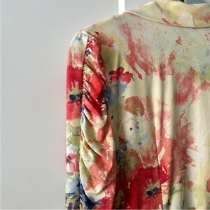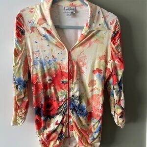 Joseph Ribkoff Ruched Watercolor Zip Top