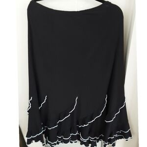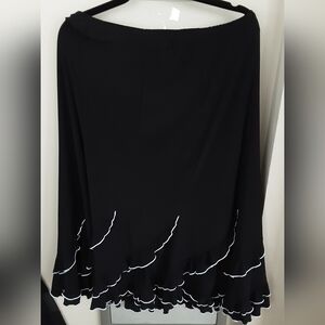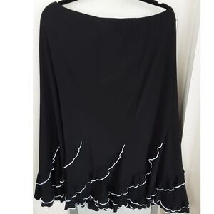 This elegant Joseph Ribkoff midi skirt features a classic black color with a stylish twist - ruffles accentuated with white detailing.