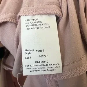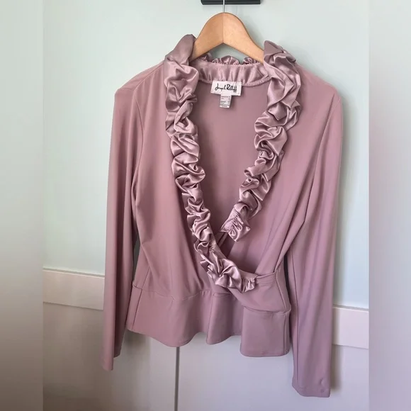 Chic ruffled top by Joseph Ribkoff. Faux wrap. Soft dusty pink/mauve color. Adds elegance to any ensemble and versatile to be used in any season.