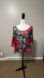 Black with red & white floral print. Sheer material. Rounded neckline. Short wide flutter sleeve.