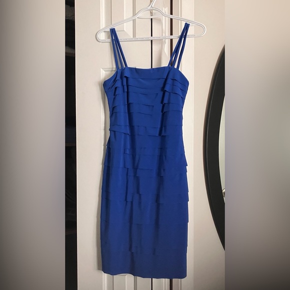 This is a beautiful Royal Blue dress. It has layers that are great to camouflage figure flaws and create beautiful shape. Great quality fabric and classic styling.