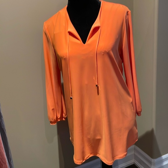 The sleeves are 3/4 length with a small amount of gathering.