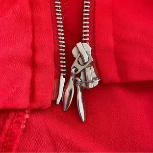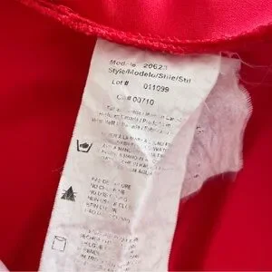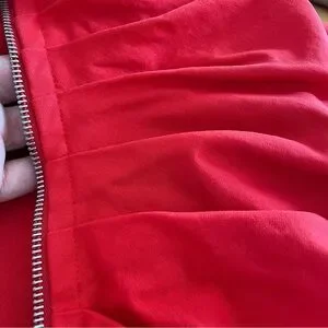 It’s a tomato red, my photos give an accurate representation of the colour. Definitely an eye catching top! Perfect for a spring outing or a cooler summer evening cocktail party after work.