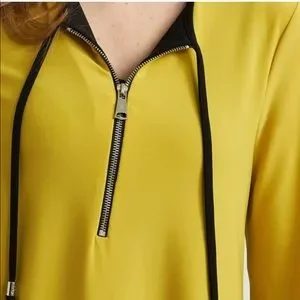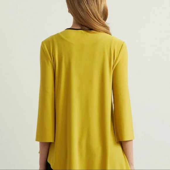 Drawstring Tunic top with 3/4 sleeve and a line asymmetrical hem line in a beautiful yellow Color