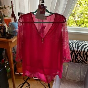 V-Neck Top With See-Thru Overlay