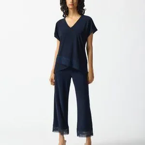 Unveil a touch of whimsy with this silky knit high-low top. Short dolman sleeves dance with the breeze, while the front hemline cascades and boasts intricate guipure trim detailing. Elevate your fashion game and twirl into a world of playful elegance with this versatile and uniquely charming garment.