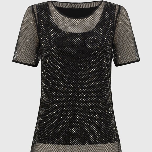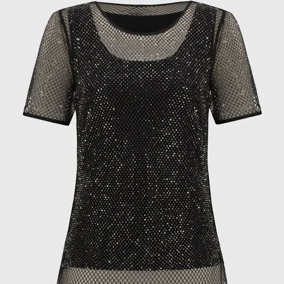 Sparkled mesh cover makes this a versatile addition to your wardrobe.