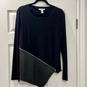 Never worn, says size 10, but fits more like size 8 or medium. Zipper detail that works with faux leather piece on the bottom.
