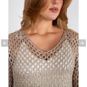 Joseph Ribkoff V Neck Crochet Knit Sweater Sequin Champange Size XXL
