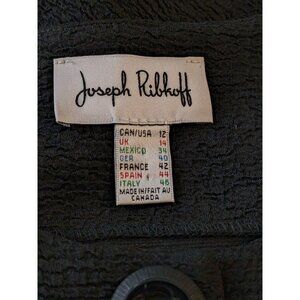 Elevate your wardrobe with the timeless elegance of this Joseph Ribkoff swing jacket. A nod to classic design with a modern twist, this mid-length jacket features a striking black and red colorblock pattern, ideal for those who appreciate a bold statement. The polyester outer shell ensures durability and a comfortable fit, while the long sleeves and collarless style offer a sleek silhouette perfect for layering.Crafted in Canada, this vintage piece is a tribute to the stylish aesthetics of the 80s and 90s. It's a versatile addition to your collection, suited for business meetings, casual outings, or cocktail events. The classic fit size 12, textured details, and three-button closure add a touch of sophistication to any ensemble, making it a must-have for those who value designer wear with a hint of retro charm.