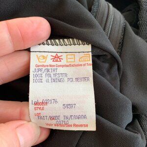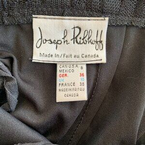 Elevate your wardrobe with the timeless elegance of Joseph Ribkoff. This black, just below the knee-length A-line skirt is a versatile piece that boasts a delicate floral pattern, complemented by shimmering rhinestone accents on a sophisticated mesh fabric. Designed with a mid-rise fit and a comfortable polyester lining, this skirt is perfect for a range of occasions, from formal events to cocktail parties, making it an essential addition to any fashion-forward collection. Crafted with care in Canada, the skirt features a practical zip closure and is easy to maintain with its hand wash only requirement. Whether you're channeling a vintage or witchy vibe, this skirt's semi-sheer charm and all-season suitability will keep you looking enchanting through fall, spring, summer, or winter. EUC