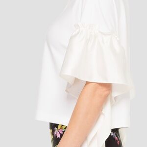 The colour of this top by Joseph Ribkoff makes it elegant and versatile - White with Cream Ruffle 3/4 Sleeve