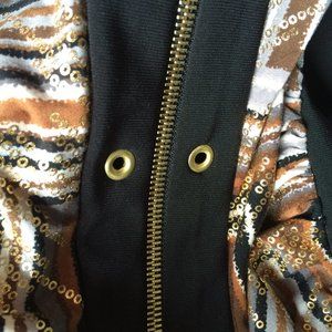 Joseph Ribkoff Womens Gold Sequin Print Top Sz 8 Zig Zag Pattern 3\4 Sleeve Zip