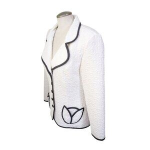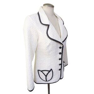 Joseph Ribkoff Womens Jacket Blazer Size US 10 Textured White Black Piping Trim