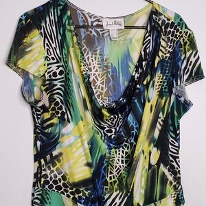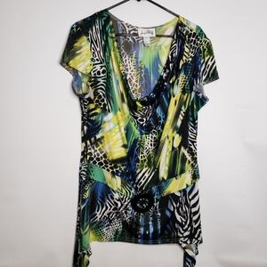 Joseph Ribkoff Women's Multicolour Animal Pattern Short Sleeve Top Size 16