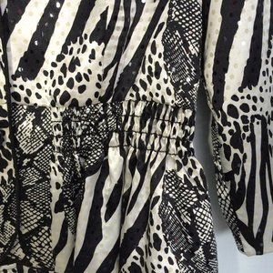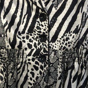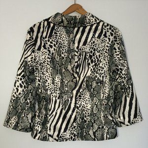 Joseph Ribkoff Womens Sequin Jacket Sz 8 Animal Print Black White Button Lined