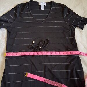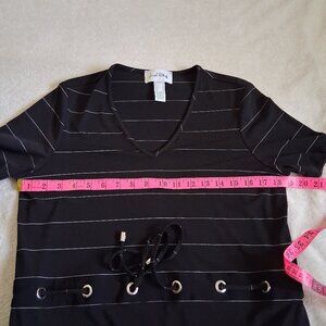 Joseph Ribkoff Women's Size 8 Black/Vanilla Stripe V Neck Tie Waist Midi Dress