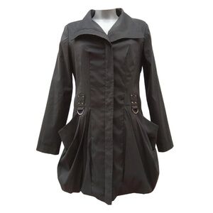 Joseph Ribkoff Y2K Trench coat Bubble hem Mobwife Oversized pockets Black Sz 12