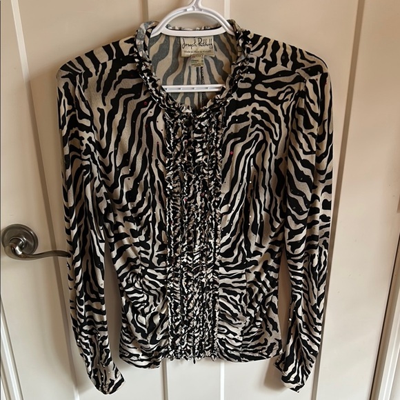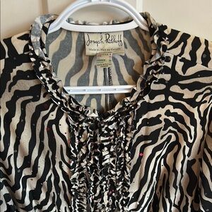 Joseph Ribkoff Zebra Sparkly Ruffled Made in Canada Zip Front Top, size 8