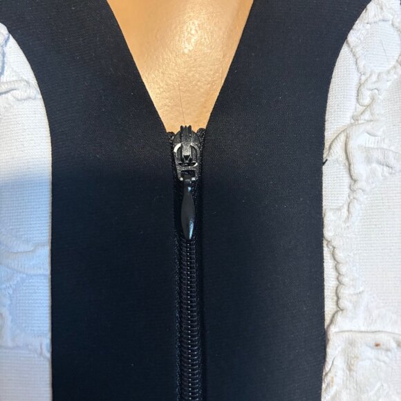 This lovely Joesph Ribkoff black and white polka dot zipper Blazer is a Size 10. Excellent used condition. Only worn a couple of times. Curved hem and double zipper makes this striking and stylish jacket or blazer timeless.