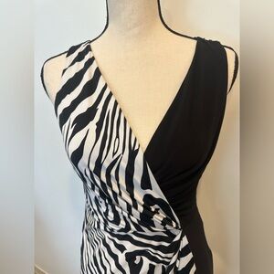 Joseph Ribkoff black and white animal print zebra EUC SZ 6 slinky tie VTG