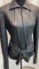 Joseph Ribkoff black faux leather full zip front buckle jacket wrinkled style 6