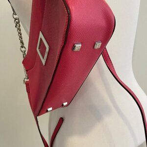 Joseph Ribkoff designer Pink Crossbody Bag With removable Chain & Strap with stylish Silver Accents