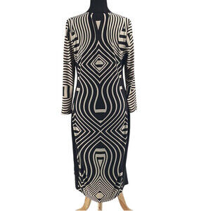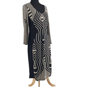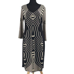 Joseph Ribkoff dress stretch illusion waist midi v neck black & cream event 10