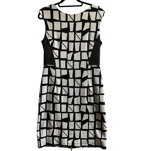 Joseph Ribkoff pattern back zipper leather panels midi dress Sz 12