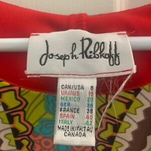 Beautiful lined multicolored sleeveless dress by Joseph Ribkoff. Excellent condition. Worn once. Side zipper..36” long from back of neck. Polyester.. Jersey with spandex