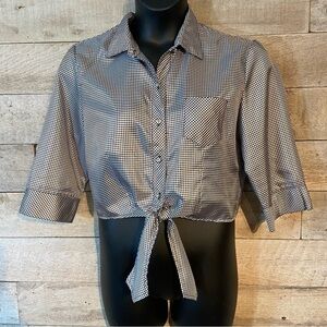 Joseph Ribkoff women’s gingham checked button up cropped blouse in size 14