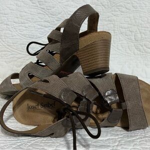 Joseph Seibel Womens Ruth 29 Taupe Leather Tie Heel Sandals, Size 39
